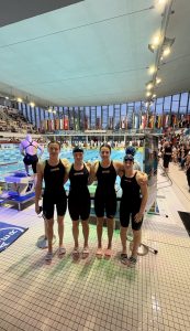 Mit großer Motivation und Teamgeist traten die jungen Schwimmerinnen des SV Delphin Wiesbaden bei den Deutschen Kurzbahnmeisterschaften 2025 in Wuppertal an. Trotz starker Konkurrenz in der offenen Klasse zeigten sie beeindruckende Leistungen und sammelten wichtige Erfahrungen für ihre sportliche Entwicklung. Die Schwimmerinnen Janna und Emma Lia Pauly, Anastasija Wagner, Madita Fricke und Emilia Weber absolvierten die 4 mal 50 m Freistil- und 4 mal 50 m Lagen Staffel. Die Platzierungen standen angesichts der zum Teil deutlich älterenKonkurrenz nicht so sehr im Vordergrund; entscheidend kam es auf den Teamgeist und die erzielten Zeiten an.Herausragend waren die 29,06 von Anastasija auf 50 m Rücken und die fliegenden Leistungen von Emma auf 50 m Schmetterling in 29,60 und Janna über 50 m Freistil in 26,48. Aber auch Madita über 50 m Brust in 36,69 und Emilia über 50 m Freistil in 29,45 machten mit beachtlichen Bestzeiten auf sich aufmerksam.